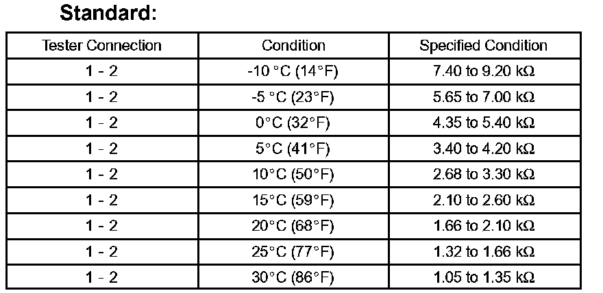 If the result is not as specified, replace the cooler thermistor sensor.