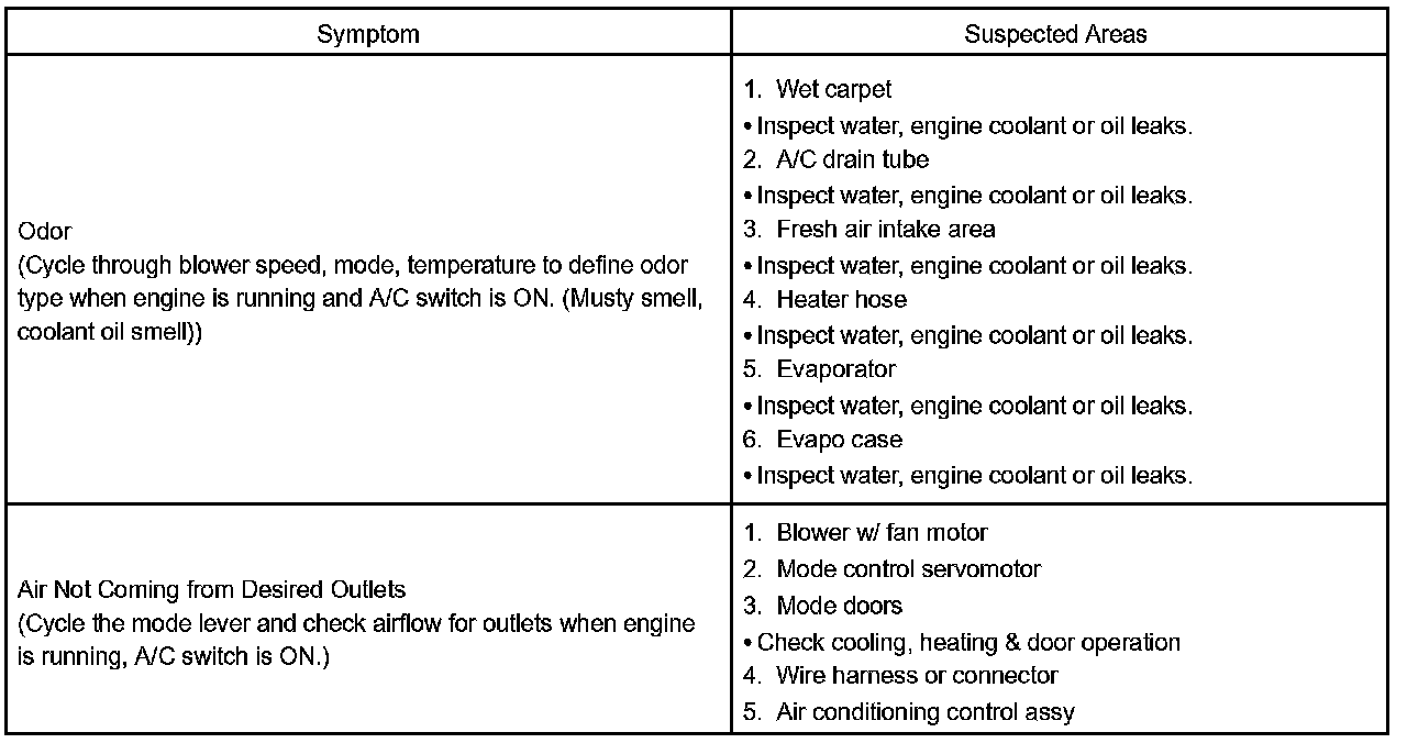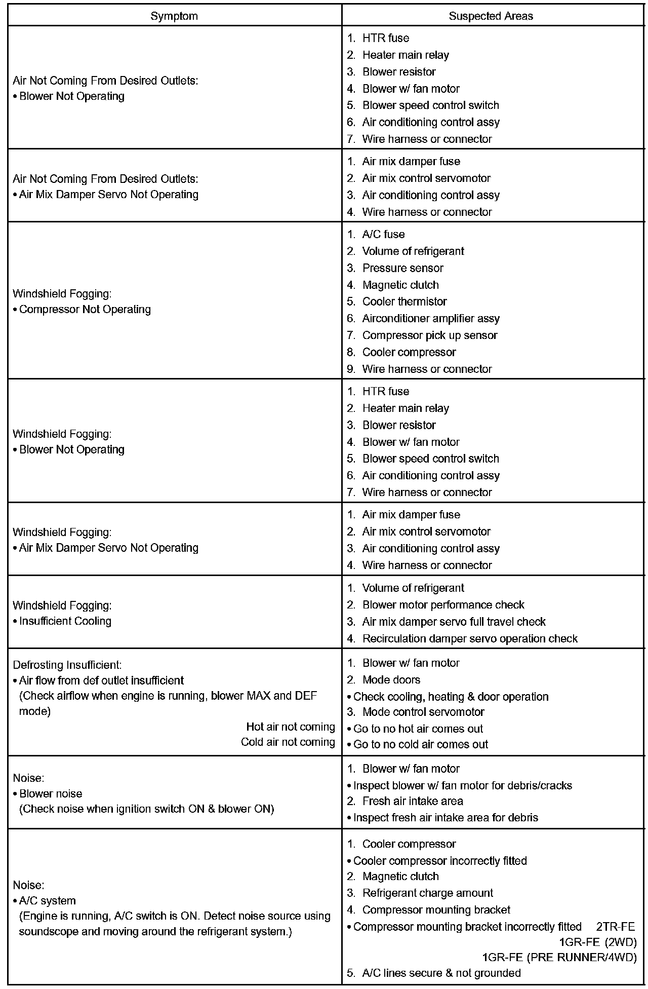 Problem Symptoms Table - Air Conditioning System Part 1: