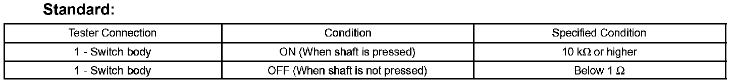 If the result is not as specified, replace the front fog lamp switch assembly.