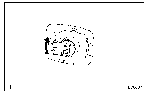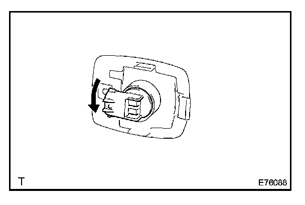 b. To install the license plate lamp bulb socket and bulb, turn them in the direction indicated by the arrow in the illustration.