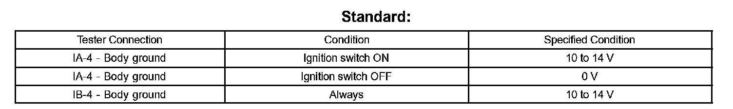 2. Measure the voltage and check the results in accordance with the value(s) in the table