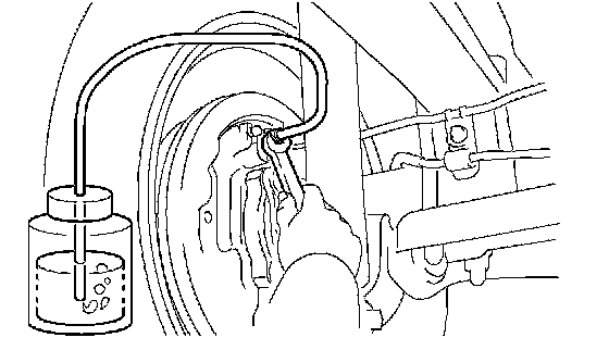 b. Depress the brake pedal several times, then loosen the bleeder plug with the pedal held down.