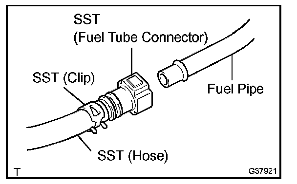 1. In the condition above, disconnect the tester probes of SST (wire) from the battery and check the fuel leakage from the injector.