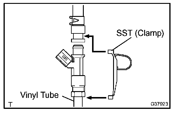 CAUTION: Install a suitable vinyl tube onto the injector to contain any gasoline spray.