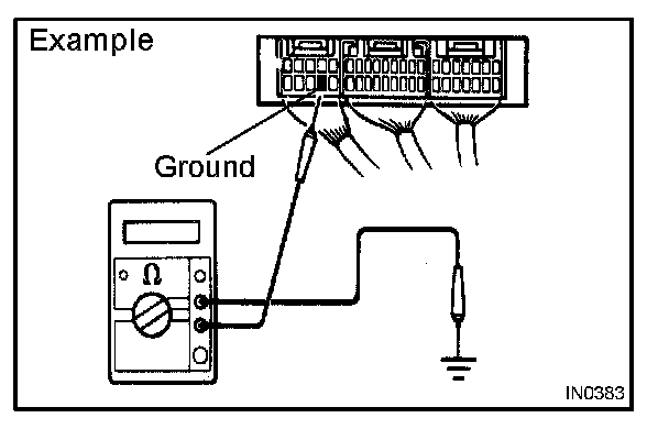 1. Measure the resistance between the ECU ground terminal and body ground.