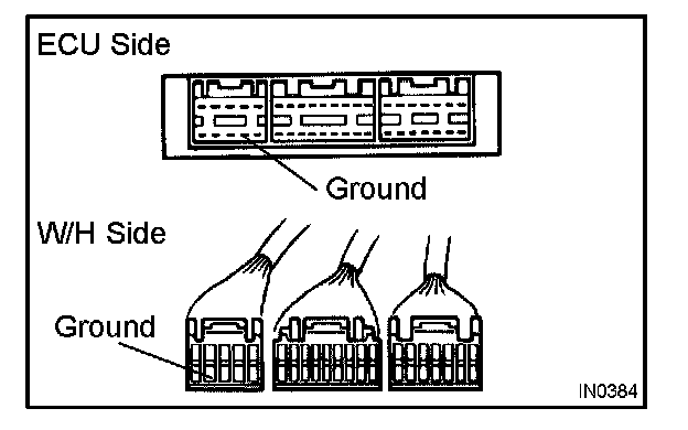 2. Disconnect the ECU connector. Check the ground terminals (on the ECU side and wire harness side) for evidence of bending, corrosion or foreign material. Lastly check the contact pressure of the female terminals.