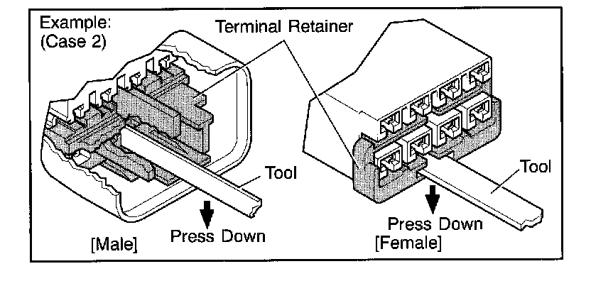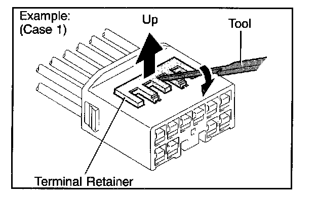 HINT: To remove the terminal from the connector, please construct and use the special tool or like object shown.