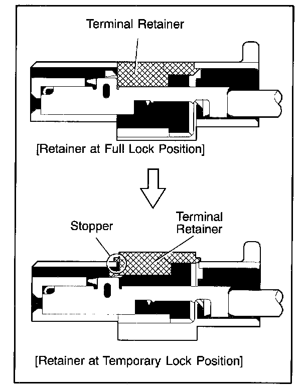 Push the terminal retainer down to the temporary lock position.