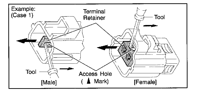 Type which cannot be pulled as far as Power Lock insert the tool straight into the access hole of terminal retainer as shown.