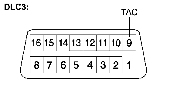 (3) Install SST onto terminal 9 (TAC) of the DLC3. Connect a tachometer, then measure the engine idling speed.