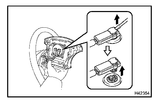NOTE: When removing the horn button assembly, take care not to pull the airbag wire harness.
