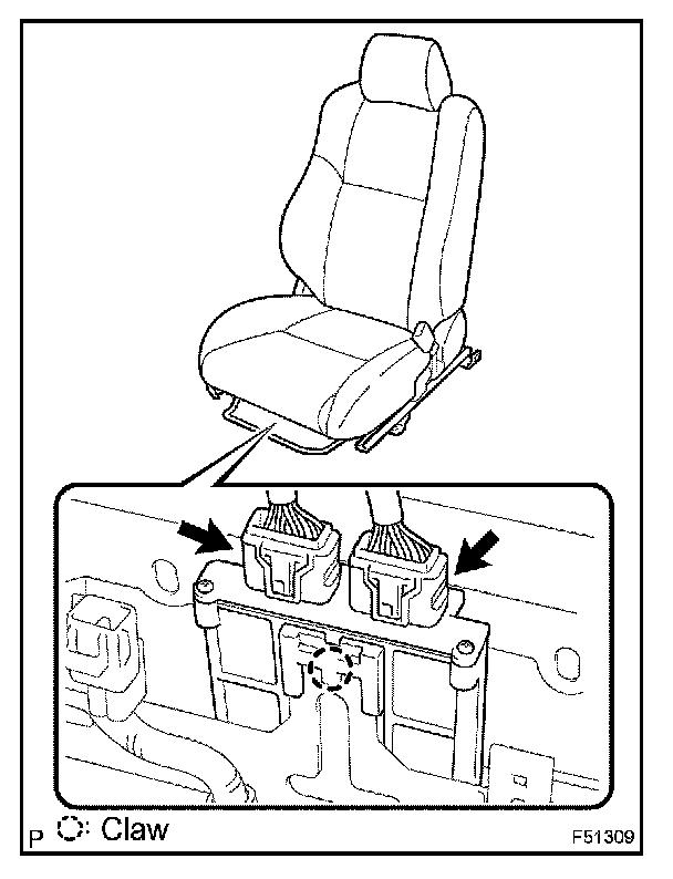 - When installing the occupant detection ECU, make sure that the SRS wiring does not interfere with any other parts and that it is not pinched between other parts.