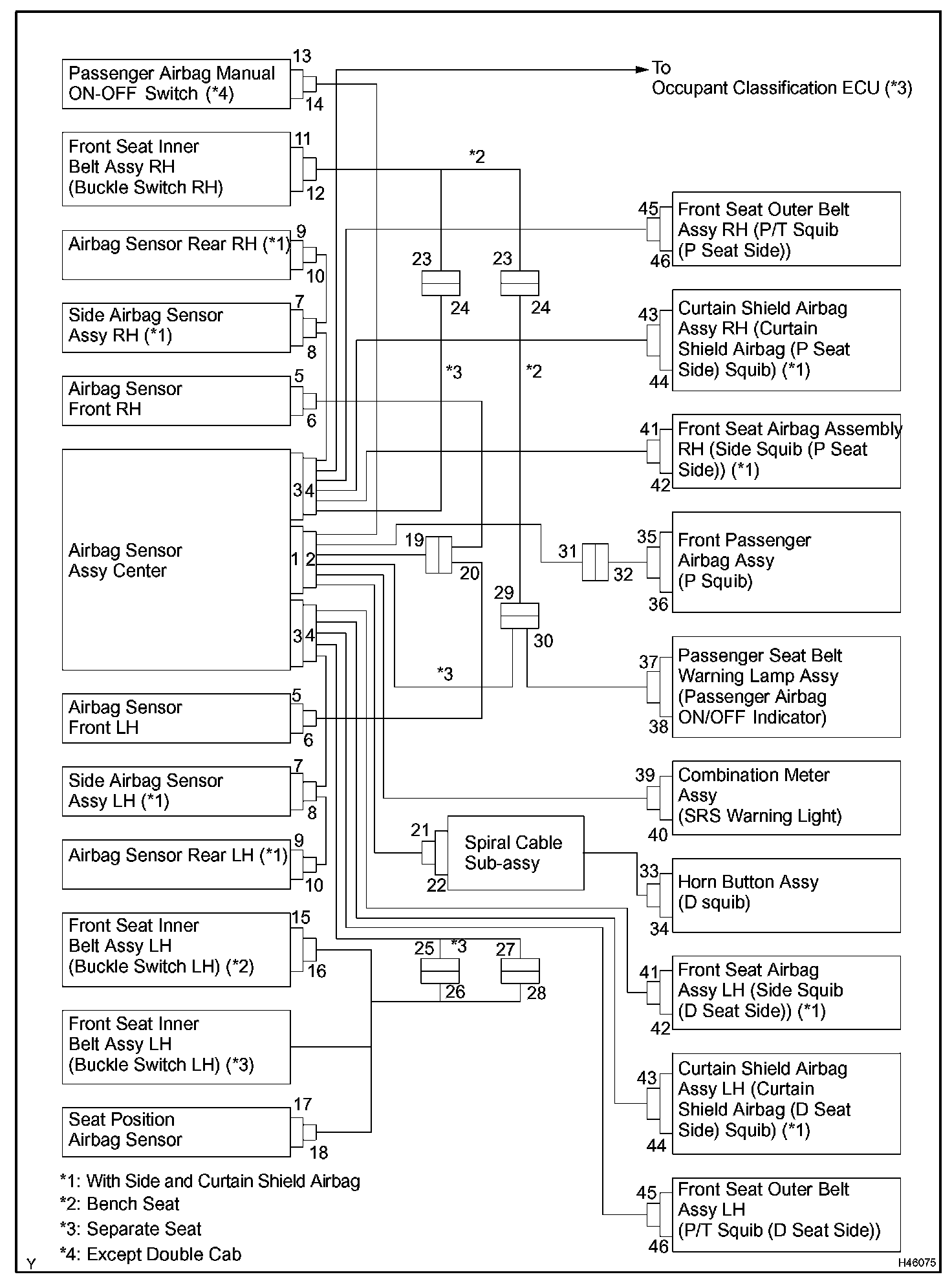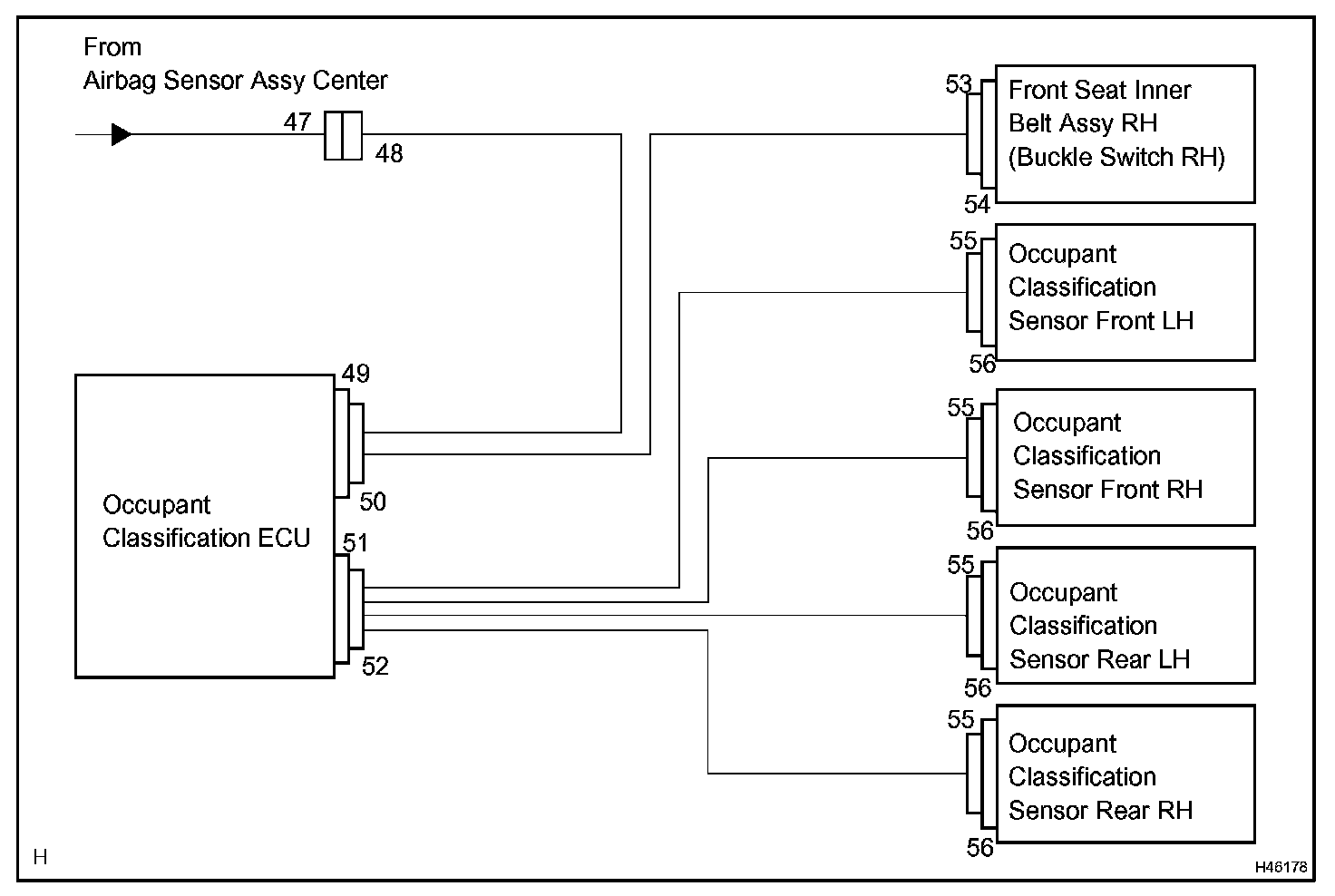 CONNECTION OF CONNECTORS FOR AIRBAG SENSOR FRONT, SIDE AIRBAG SENSOR ASSEMBLY AND AIRBAG SENSOR REAR