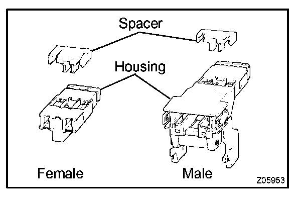 Each connector has a two-piece component consisting of a housing and a spacer. This design enables the terminal to be locked securely by two locking devices (the retainer and the lance) to prevent the terminals from becoming disconnected.