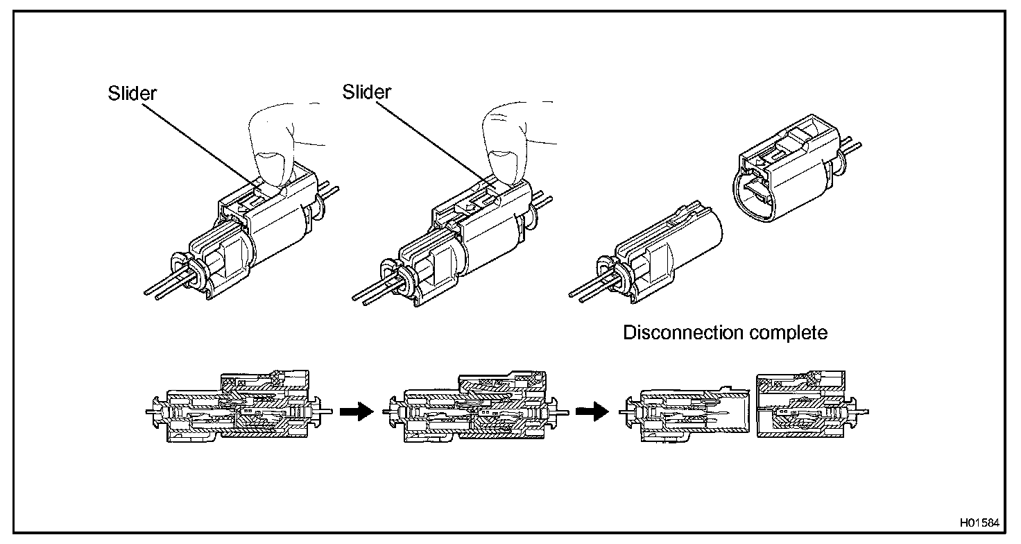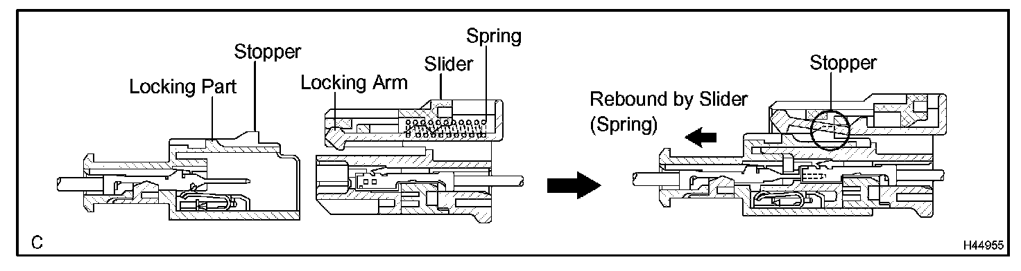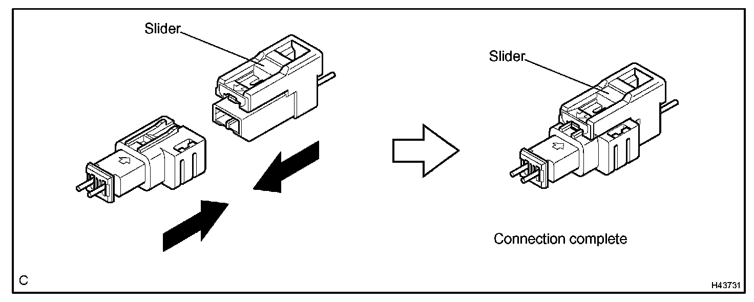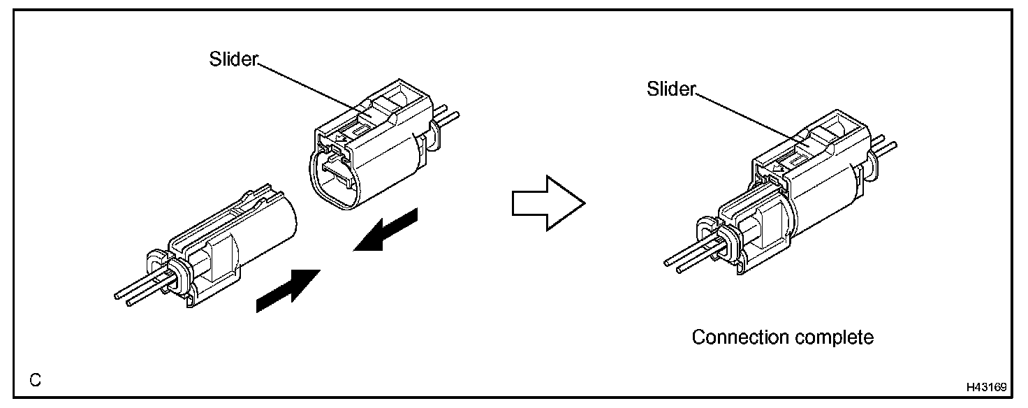 a. Connect the connector as shown in the illustration. (When locking, make sure that the slider returns to its original position and a click sound can be heard.)