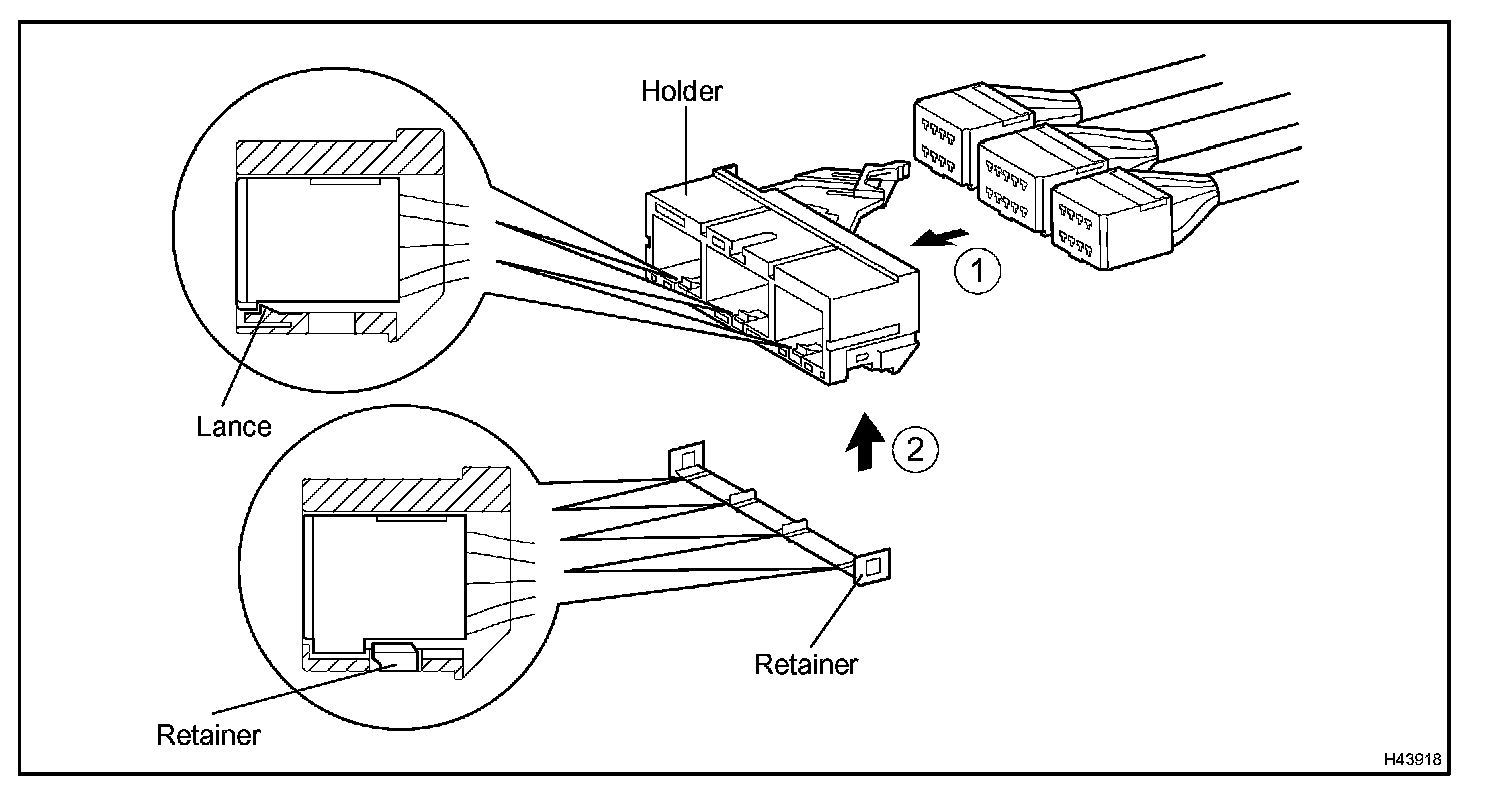 Both the primary lock with holder lances and the secondary lock with retainer prevent the connectors from becoming disconnected.