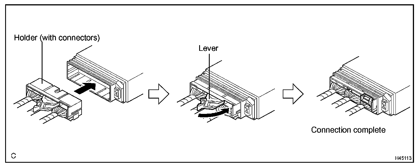 b. Push the lever to connect the holder (with connectors). (When locking, a click sound can be heard.)