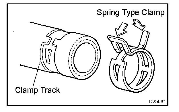 d. For a spring type clamp, to spread the tabs slightly after installation by pushing in the direction of the arrow marks as shown in the illustration.