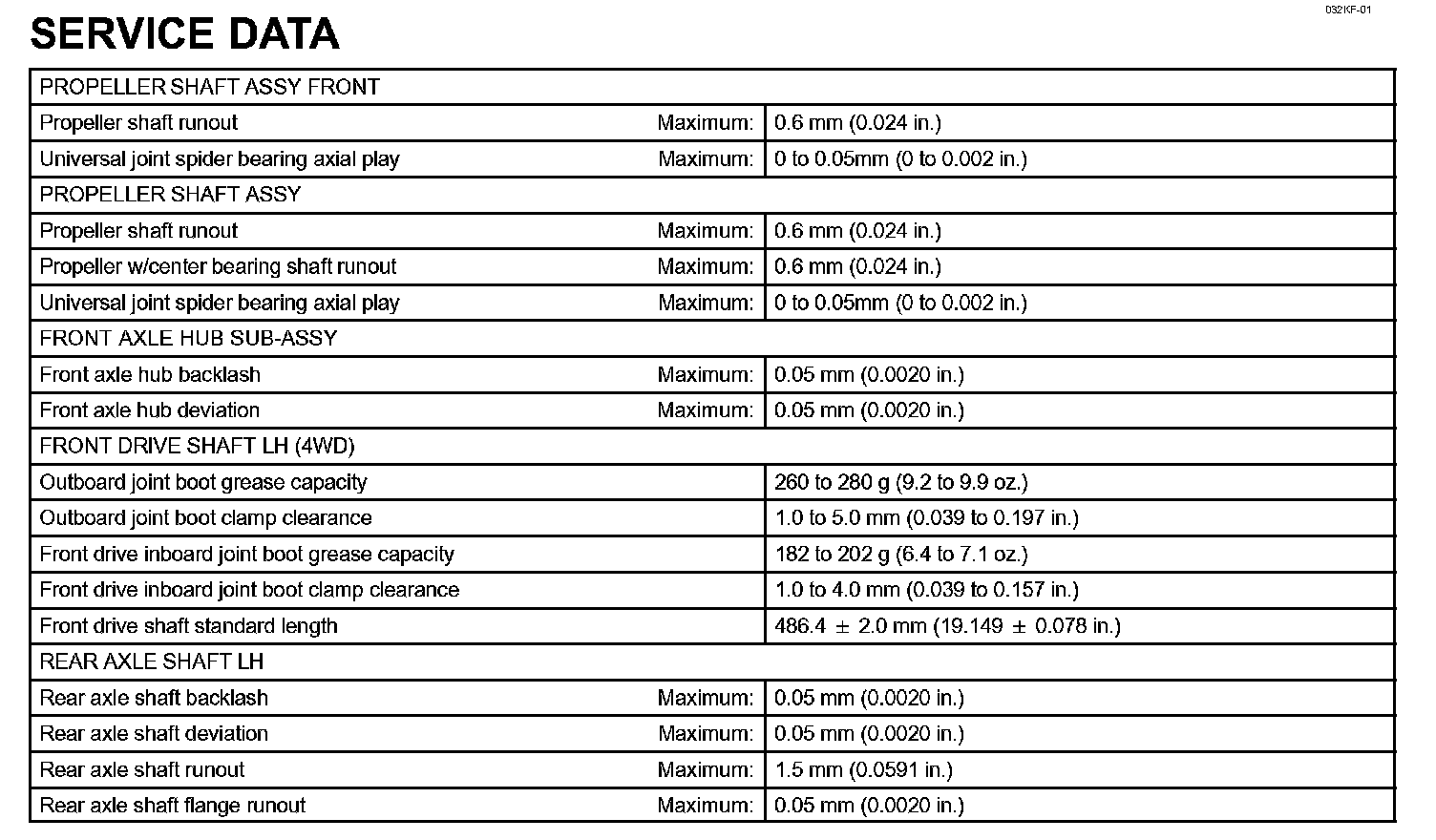 Drive Shaft/Propeller Shaft/Axle - Service Data: