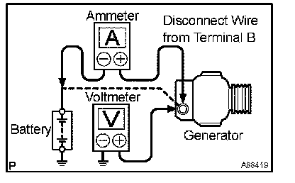 1. Disconnect the wire from terminal B of the generator,then connect it to the negative (-) lead of the ammeter.