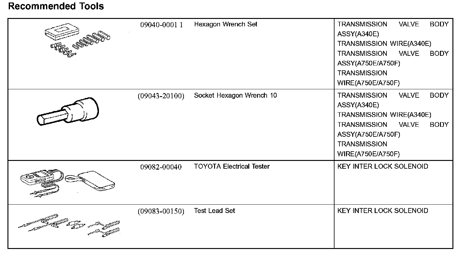 Automatic Transmission/Trans - Recommended Tools: