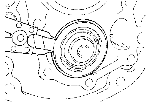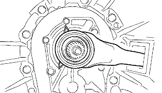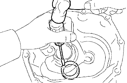b. Using a brass bar and a hammer, remove the front bearing retainer from the transmission case.