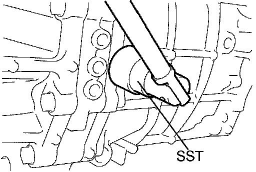 a. Using SST, remove the back-up lamp switch assy and the gasket from the transmission case.
