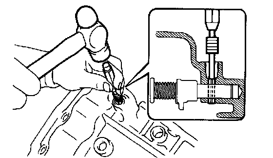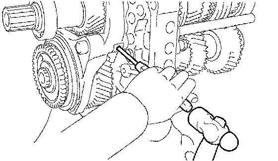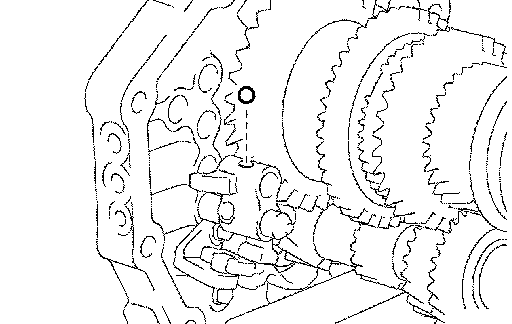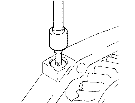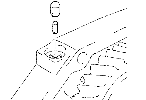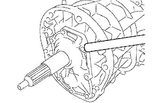 b. Using a pin punch (5 mm) and a hammer, remove the reverse restrict pin slotted from the transfer adapter or extension housing.