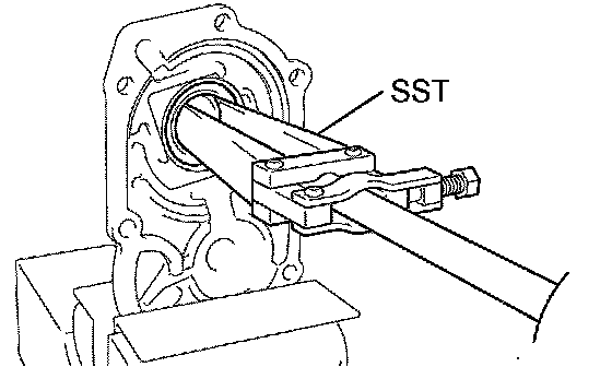 b. Using SST, remove the transmission front bearing retainer oil seal.