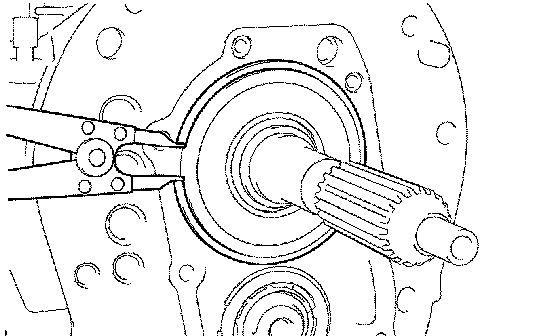 22. REMOVE FRONT BEARING SHAFT SNAP RING