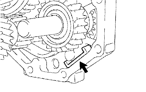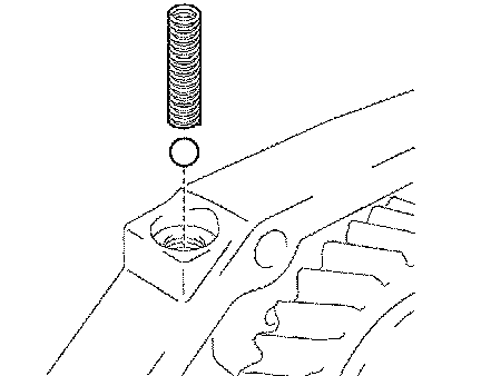 NOTICE: Cover the hole with a shop rag to prevent the reverse shift fork ball from popping out.
