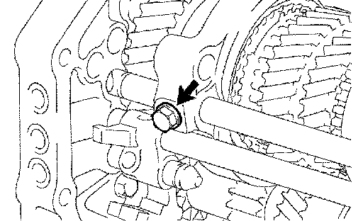 b. Remove the shift fork set bolt from the gear shift fork No.1.