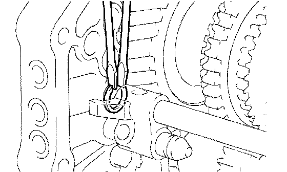 a. Using a snap ring expander, remove the front bearing shaft snap ring from the transmission case.
