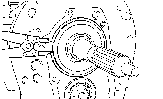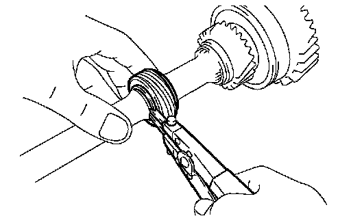 a. Using a snap ring expander, install the front bearing shaft snap ring onto the transmission case.