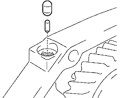 b. Using a pin punch (5 mm) and a hammer, install the reverse restrict slotted pin into the transfer adapter (R155F) or extension housing (R155).