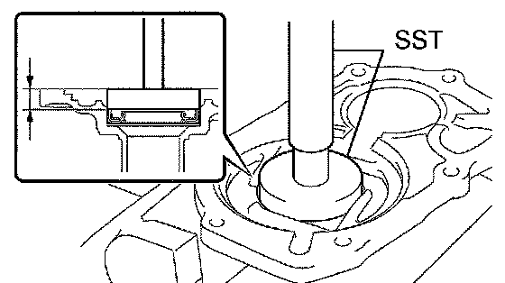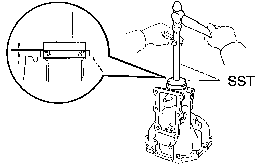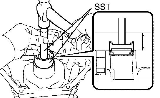 a. Using SST and a hammer, install the new transmission front bearing retainer oil seal onto the transmission front bearing retainer.