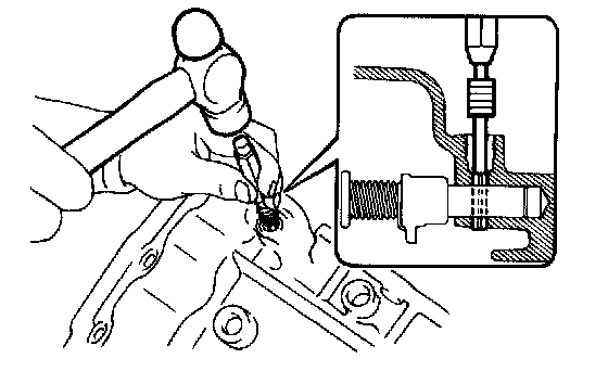 e. Using a pin punch (5 mm) and a hammer, install the shift fork set slotted spring pin into the gear shift fork No.3.