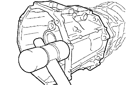b. Using a plastic hammer, tap the transfer adapter to attach it to the transmission case.