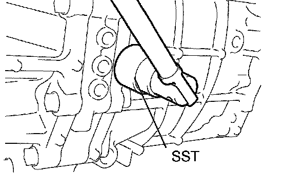 a. Using SST, install the back up lamp switch assy and the gasket onto the transmission case.