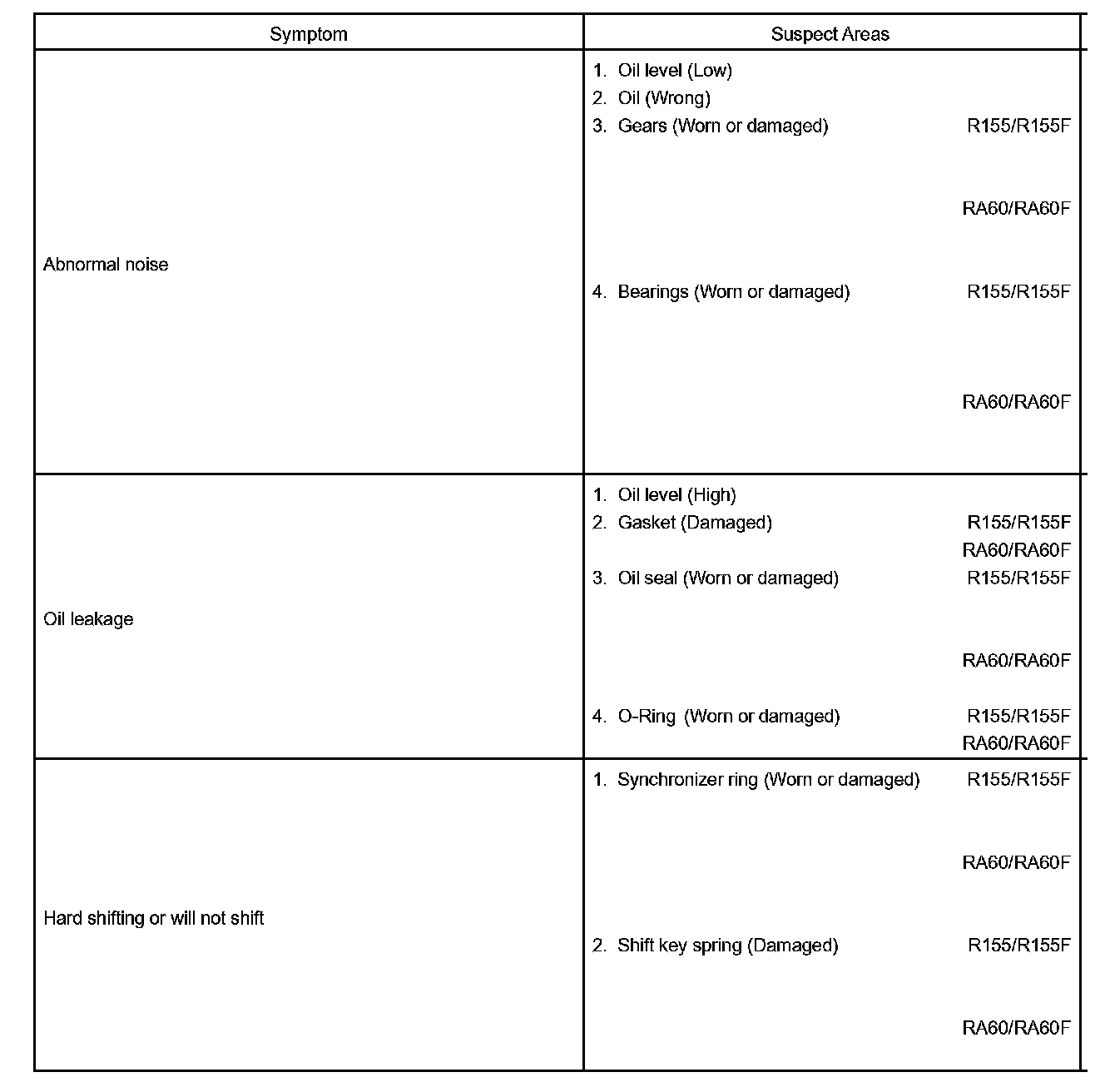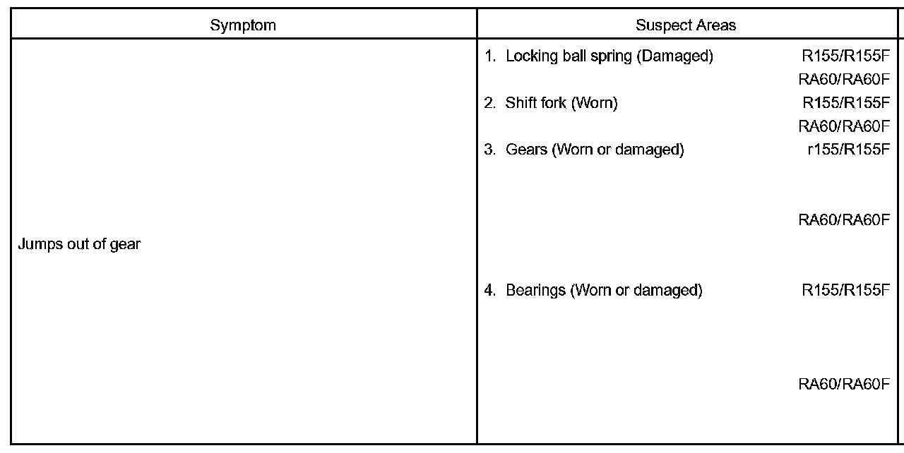 MANUAL TRANSAXLE SYSTEMPROBLEM SYMPTOMS TABLE