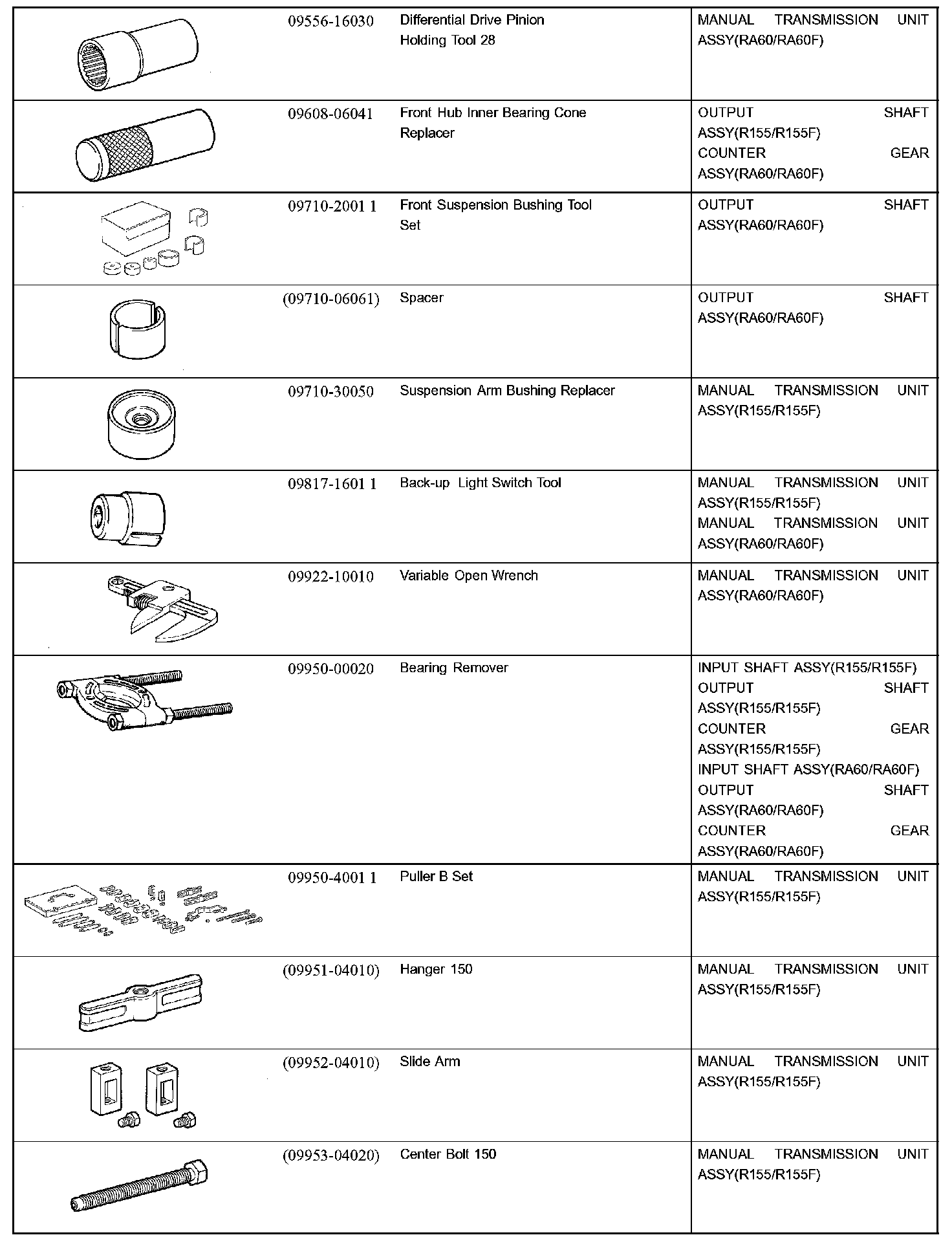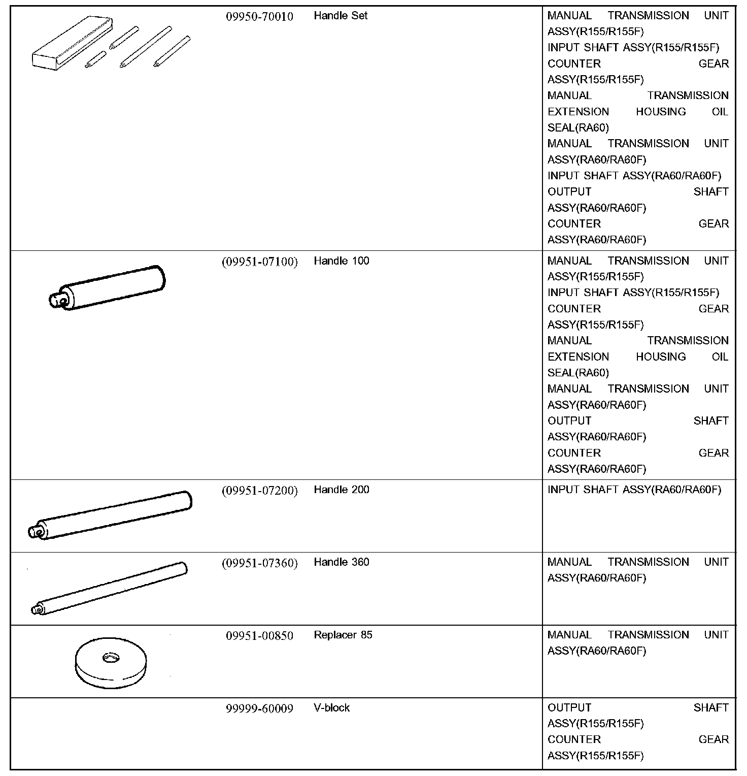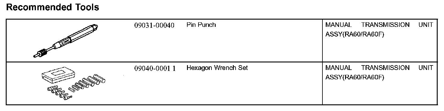Manual Transmission/Transaxle - Recommended Tools Part 1: