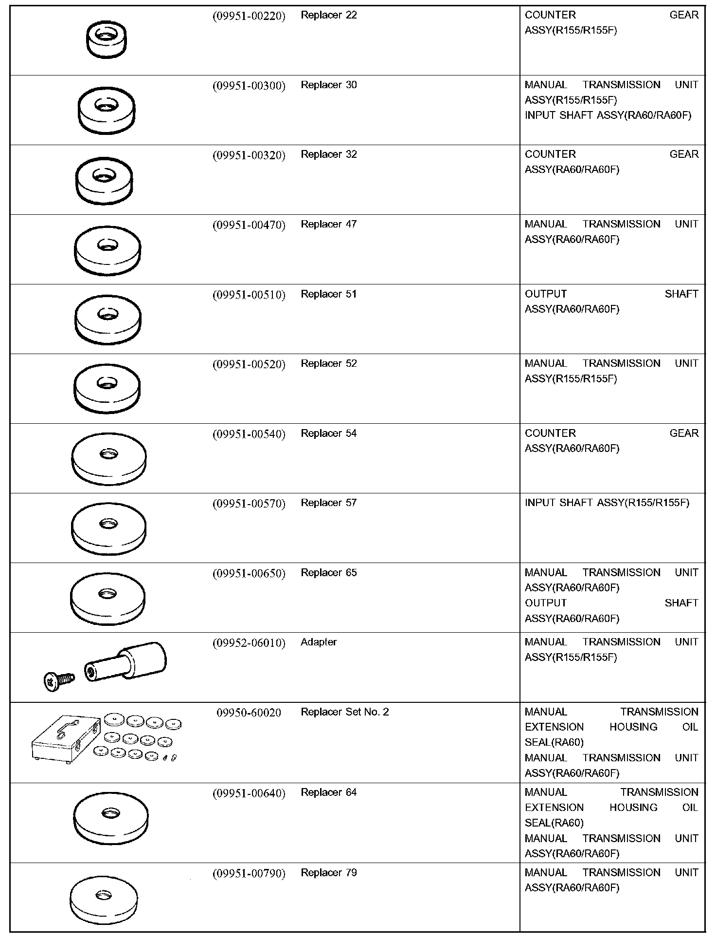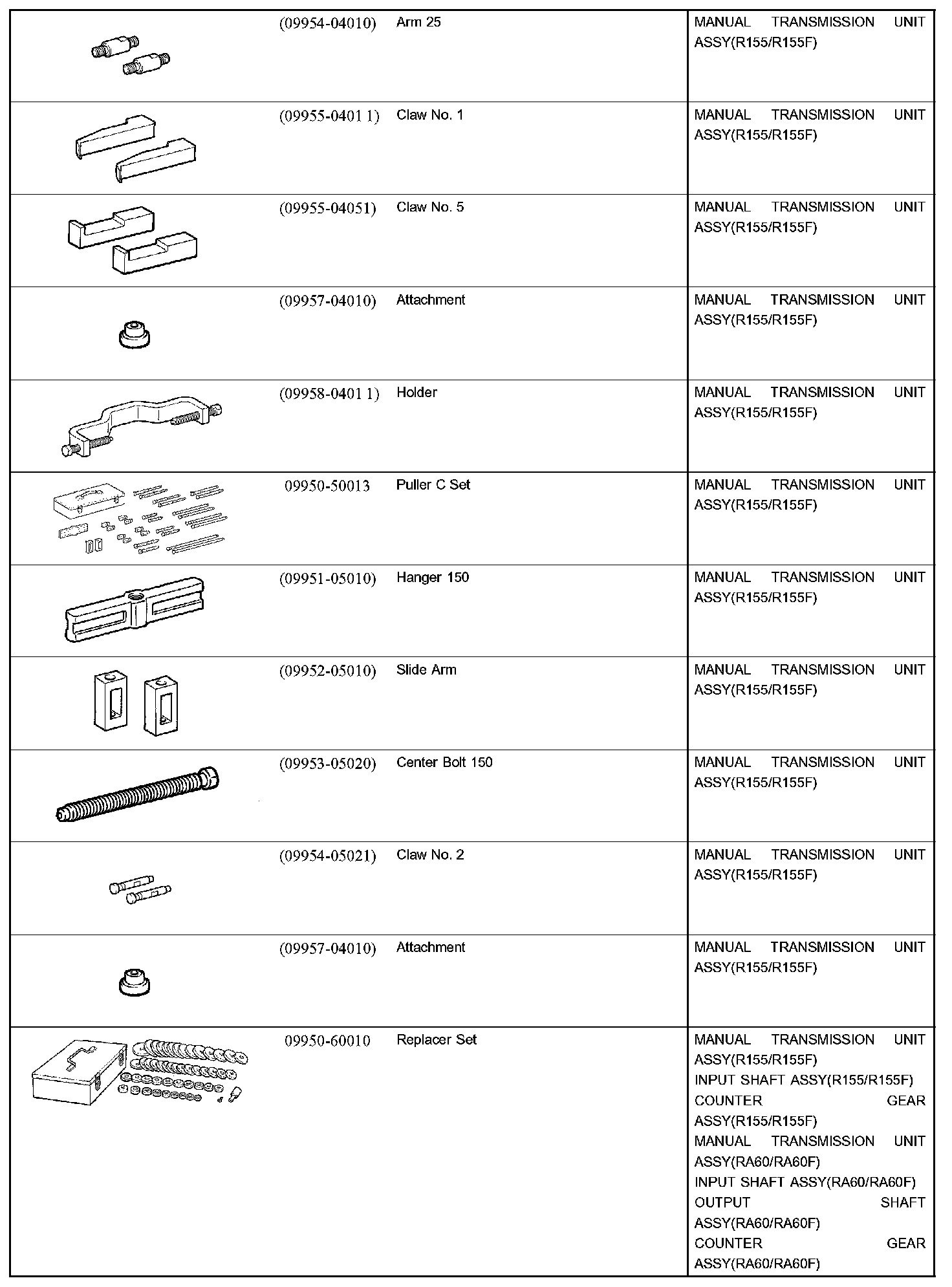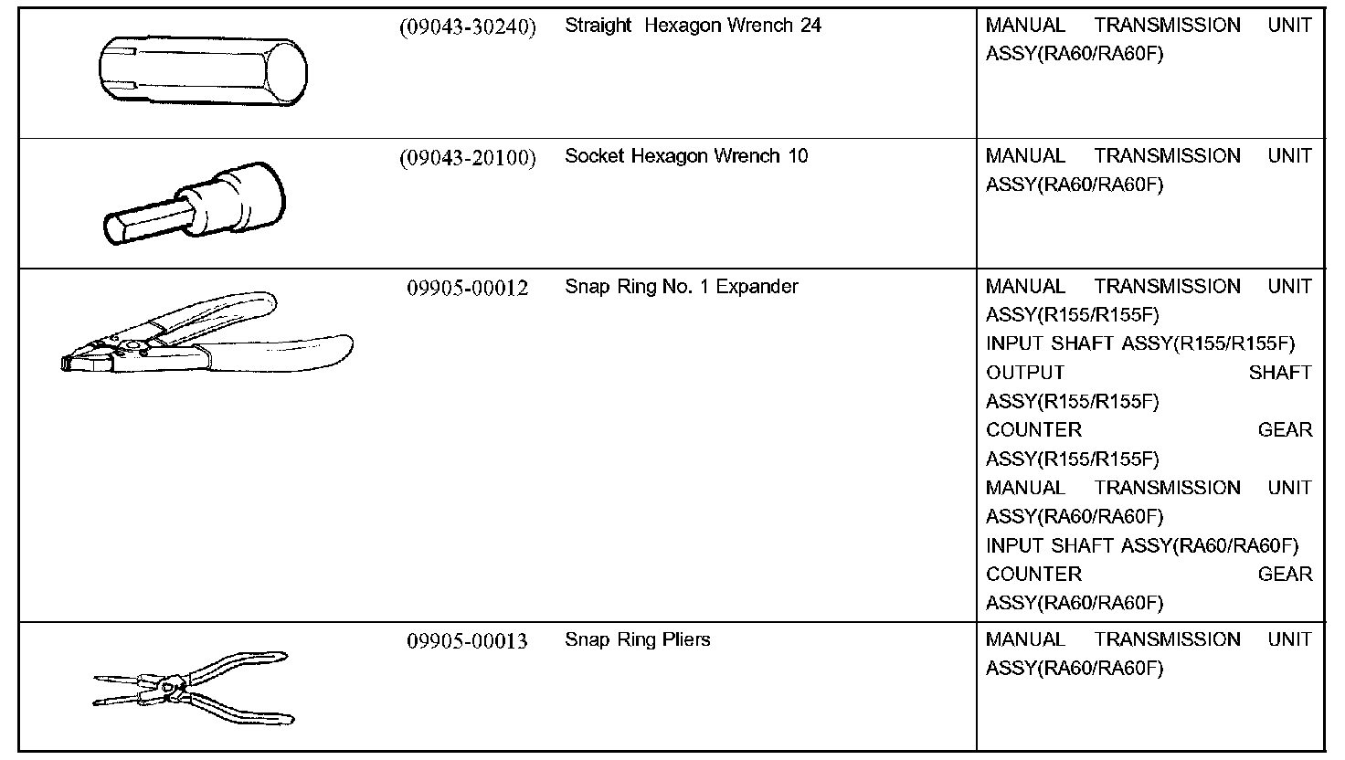 Manual Transmission/Transaxle - Recommended Tools Part 1: