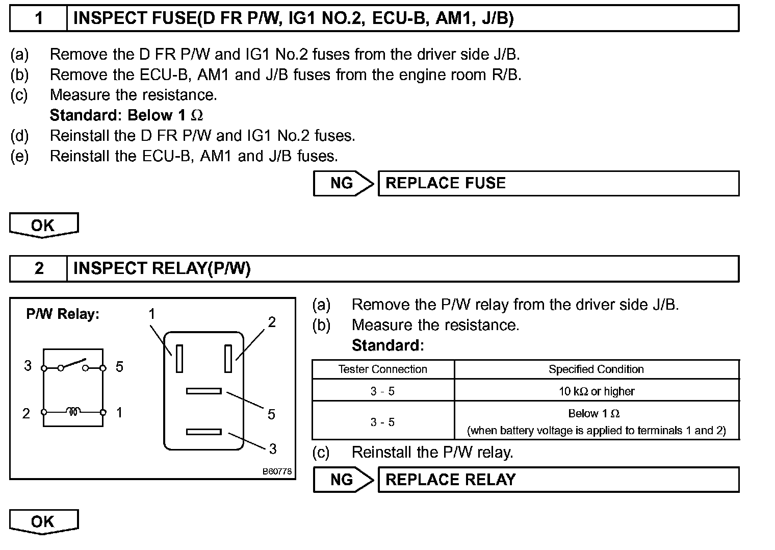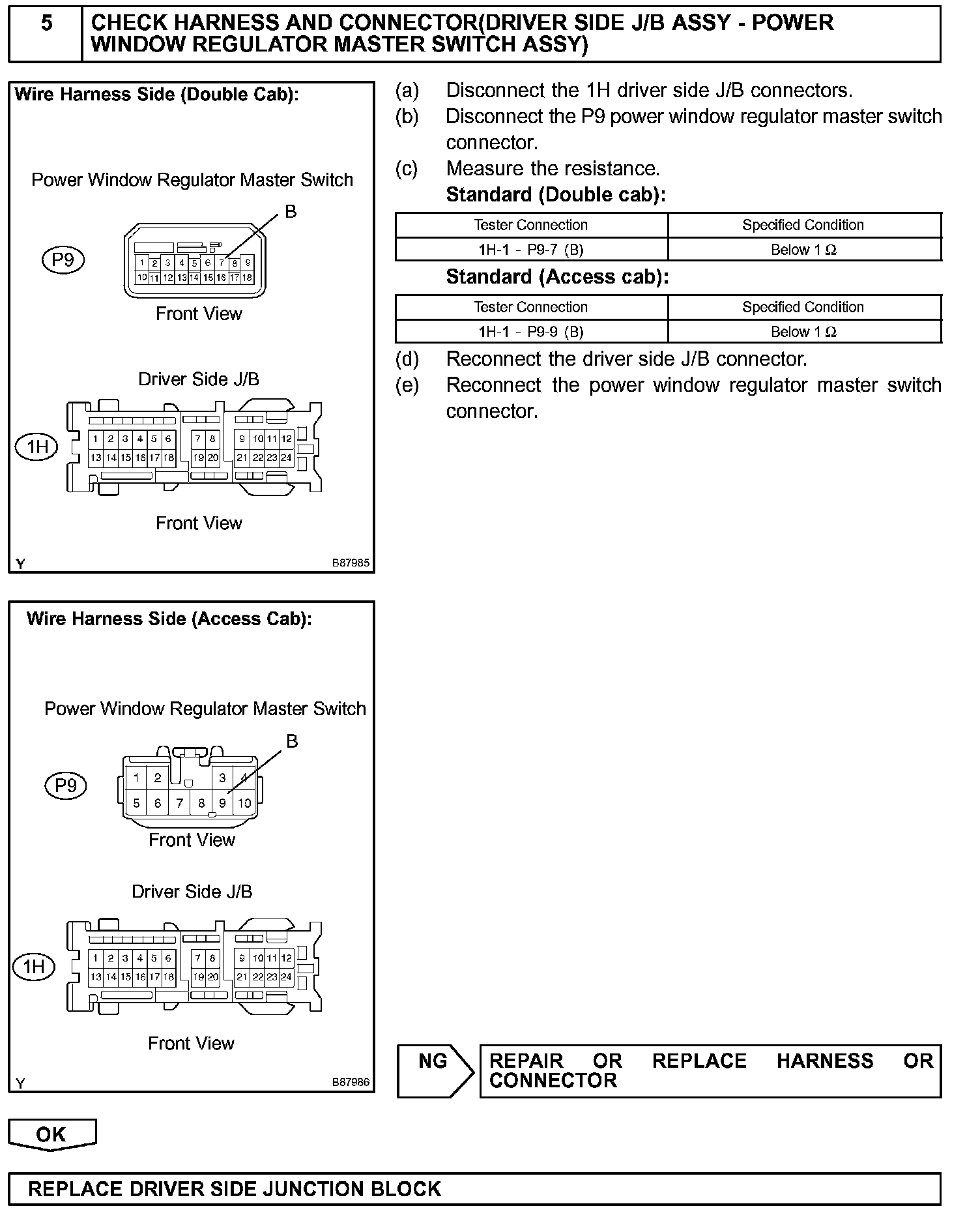If none of the door windows operate, there may be a failure in the supply of power to the power window regulator master switch assembly, or the power window regulator master switch itself may be malfunctioning.