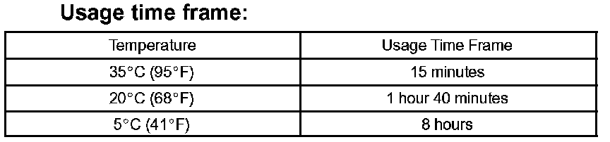 HINT: After cutting off the tip, use all adhesive within the time indicated in the table.