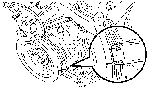 b. While turning the stopper plate of the tensioner downward, insert a bar of 3.5 mm (0.138 inch) into the holes in the stopper plate and tensioner to fix the stopper plate.
