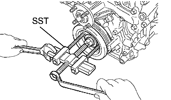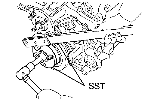 c. Using SST, fix the pulley and loosen the pulley bolt.