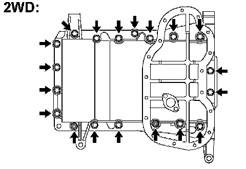 - Be careful not to damage the contact surface of the oil pan and oil pan No.2.