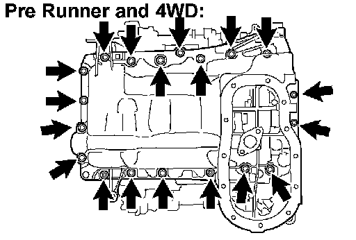 b. Remove the 10 bolts and 2 nuts (for Pre Runner and 4WD).