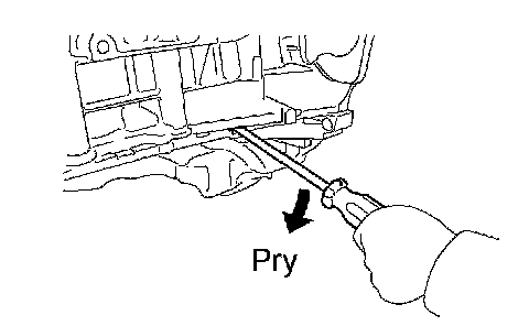 NOTICE: Be careful not to damage the oil pump assembly. Wrap a tip of the screwdriver with tape.