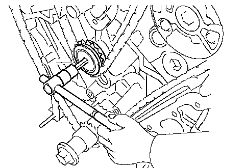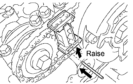- Never rotate the crankshaft with the chain tensioner removed.